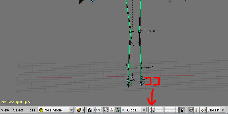 しかし、あらかぶP氏のMikuBase10.blendとは初期設定レイヤーが異なってますので、ここをあらかじめ変更しないと、Oblivion用のボーンでなくMMD用のボーンがBake Constraintsされてしまいますのでご注意を。